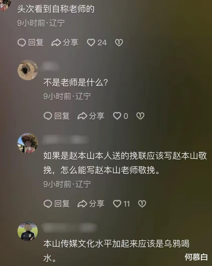 按照传统礼仪,在挽联落款时,通常直接写名字,并不添加 “老师” 这样的称呼。这一惯例在文艺圈尤其是传统艺术领域中被广泛遵循。赵本山作为在演艺界极具影响力的人物,按理说对这样的规矩不应陌生。但由于他本人并未亲临现场,委托他人操办送花圈事宜,或许是操办之人出于对赵本山的尊敬,在落款时加上了 “老师” 二字,从而引发了网友们的质疑。